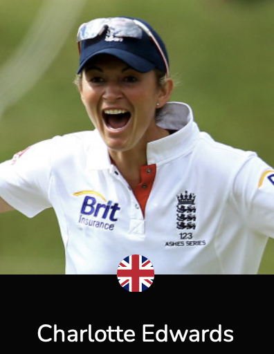 Charlotte Edwards is a former international cricketer who captained England and played for teams in Australia and New Zealand. Charlotte is regarded as one of the most decorated female cricketers in the history of the game, leading England to three Ashes series wins and two World Cups. Charlotte was awarded an MBE & CBE for her services to cricket.
