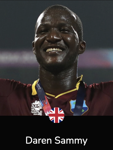 Daren Sammy was born in Micoud, Saint Lucia and represented the West Indies, Windward Islands and St.Lucia Zouks. Daren played for teams in the IPL, CPL, BPL, Big Bash League and T20 Blast. Daren led the West Indies, against all odds, to T20 World Cup wins in 2012 and 2016.