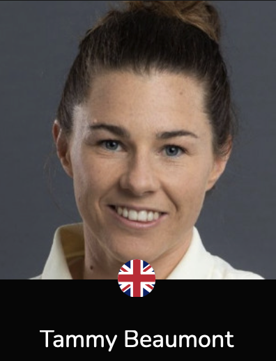 Tammy Beaumont was born in Kent, England and has represented England. Tammy has played for a number of domestic teams across England and Australia. In 2018, Tammy was awarded an MBE, for her standout performances and for contributing to England winning the World Cup in 2017. In 2021, Tammy was ranked the number 1 batter in the ICC World Rankings.